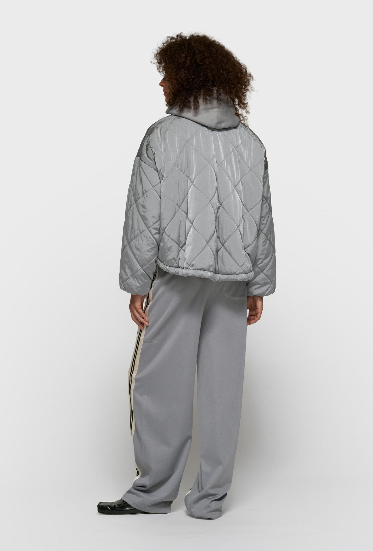 Krótka kurtka bomberka typu quilted, w kolorze lśniącej szarości