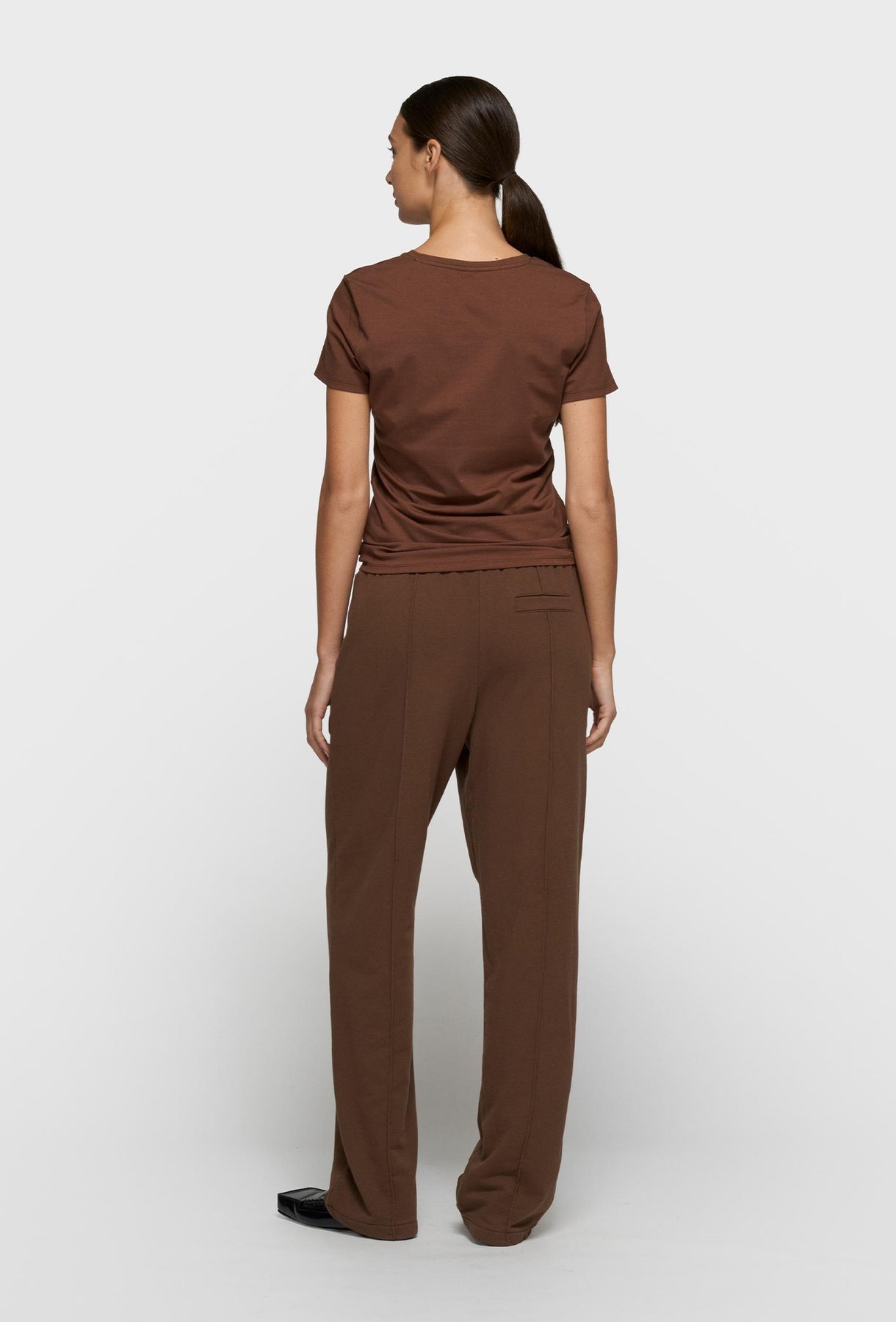 Klasyczny t-shirt o dopasowanym kroju, zaprojektowany z myślą o minimalistycznym stylu i uniwersalnym zastosowaniu. Model z krótkim rękawem i okrągłym dekoltem subtelnie podkreśla sylwetkę, zachowując jednocześnie pełen komfort noszenia. Wykonany z wysokiej jakości, miękkiej dzianiny bawełnianej, która jest przyjemna w dotyku, elastyczna i dobrze układa się na ciele. Na przodzie koszulki znajduje się delikatny, tonalny haft z logo, nadający całości elegancki i dopracowany charakter. T-shirt doskonale sprawdzi się jako baza codziennych stylizacji – noszony zarówno samodzielnie, jak i w zestawach warstwowych, tworząc spójny total look z dopasowanymi spodniami lub bardziej casualowe połączenia.