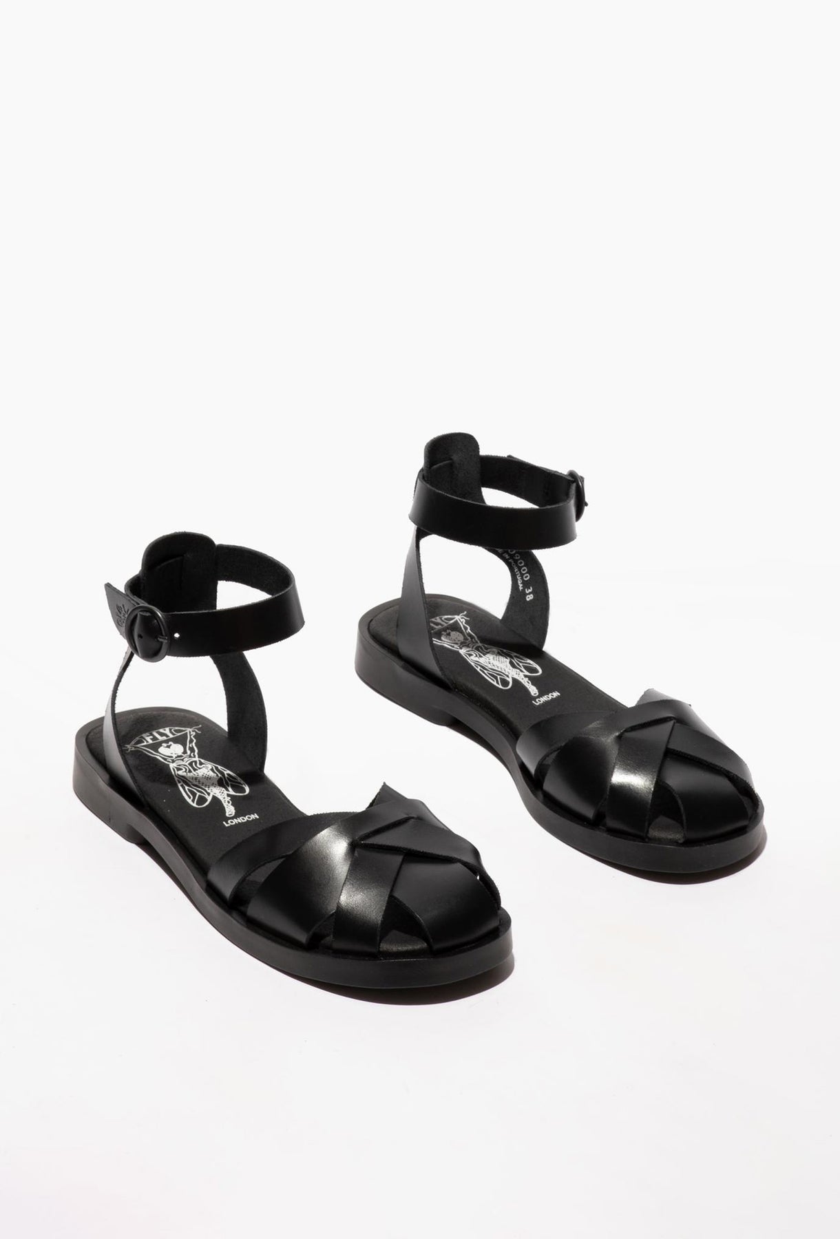 Czarne skórzane sandały rzymianki marki FLY LONDON