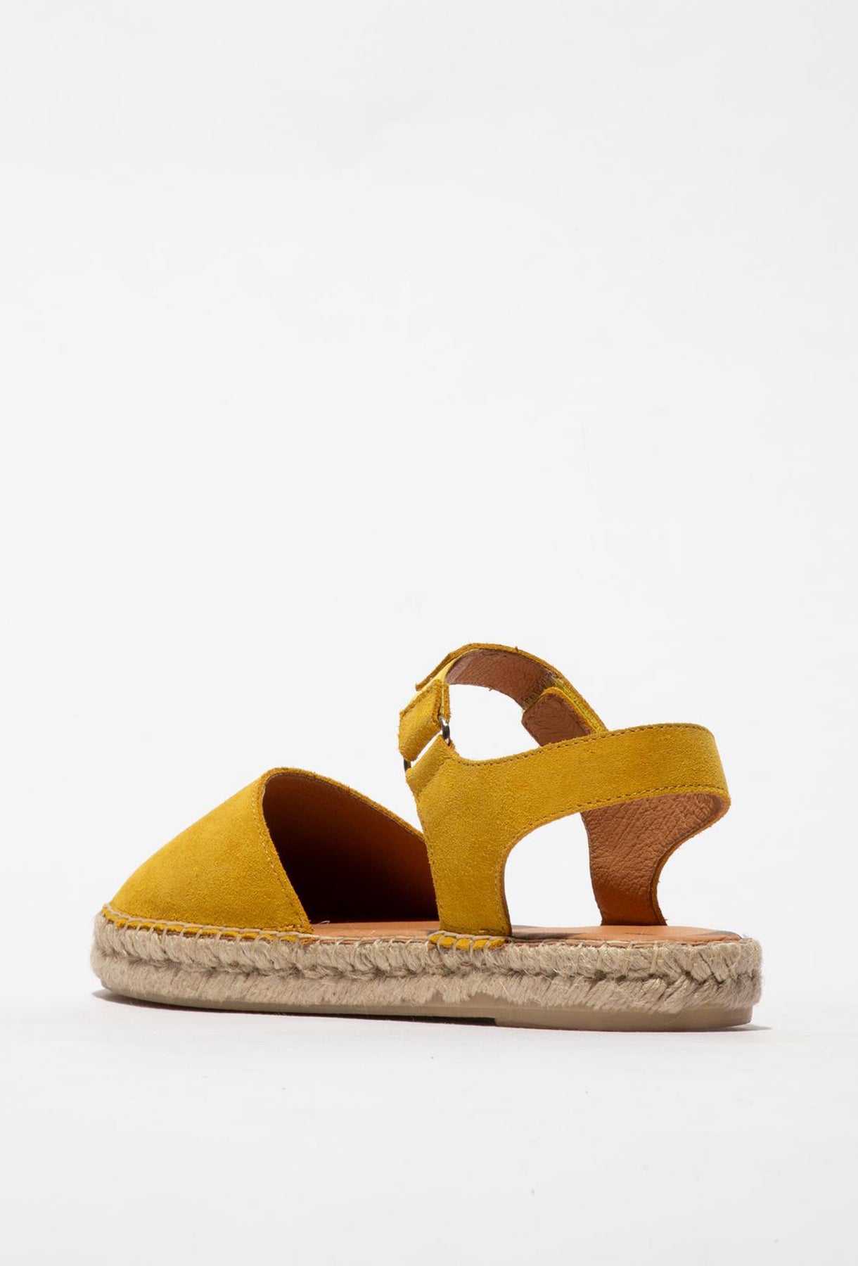 Żółte zamszowe espadryle damskie na plecionej podeszwie