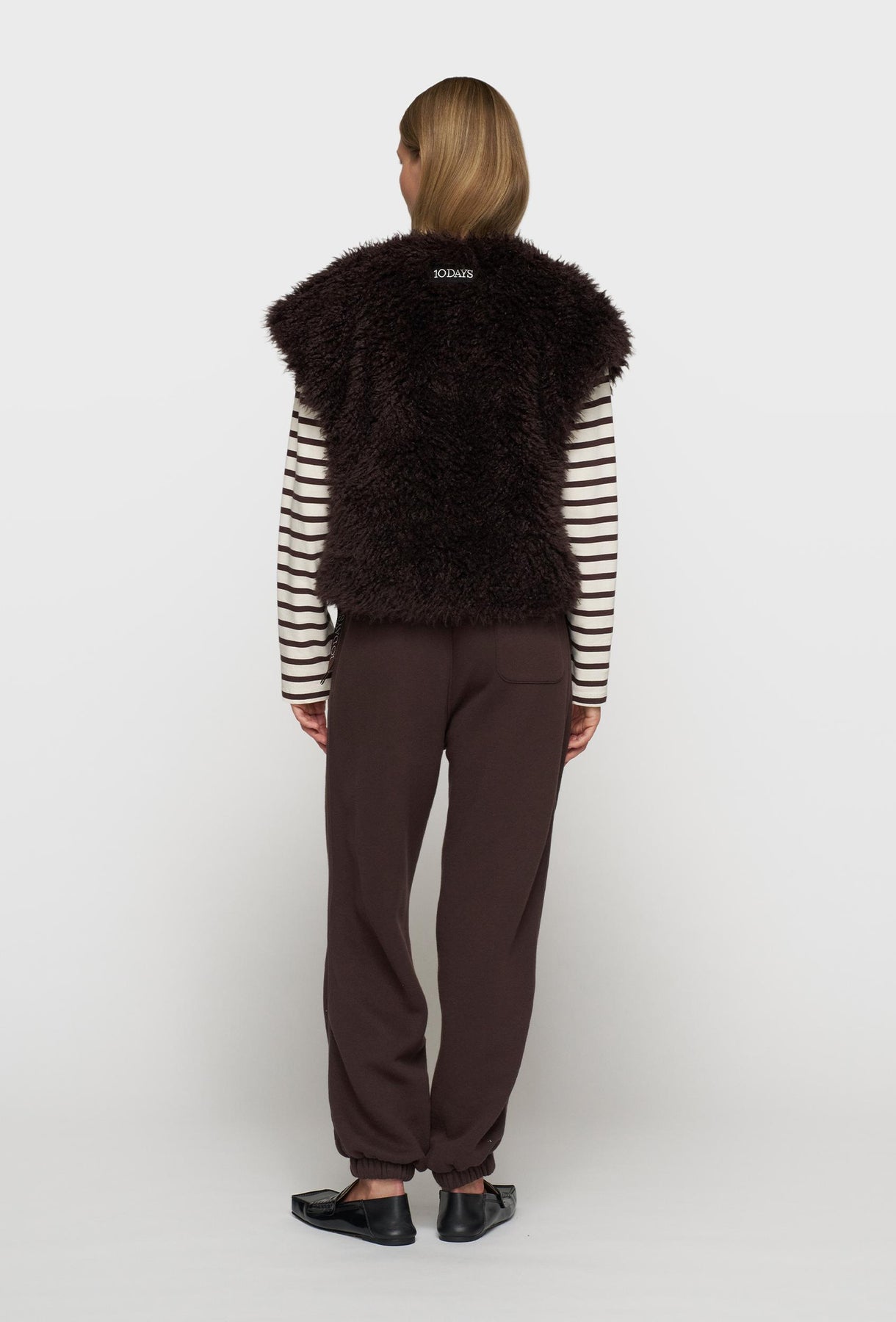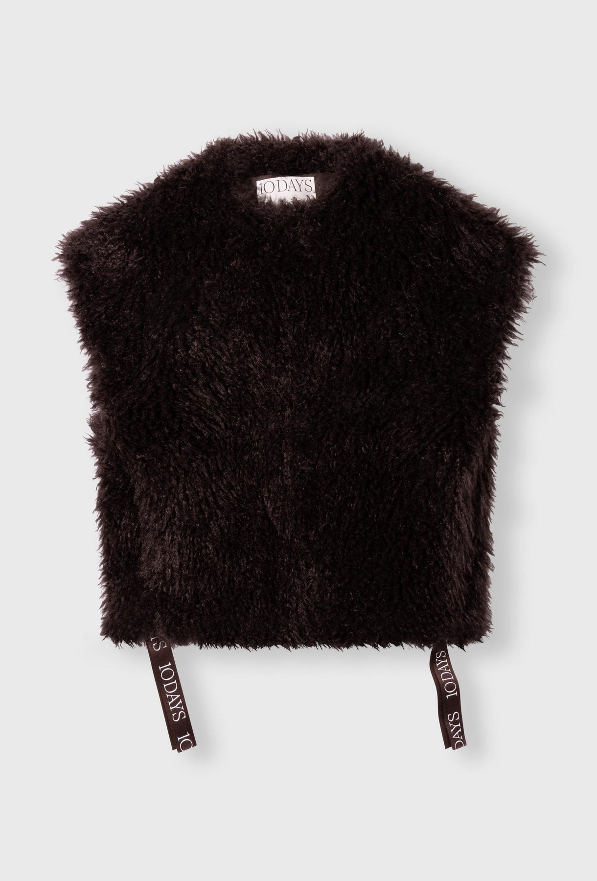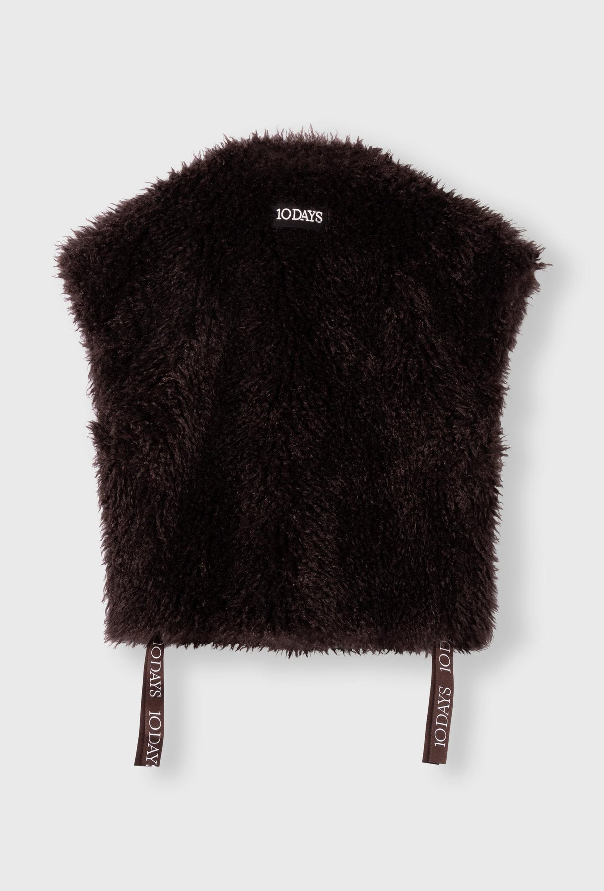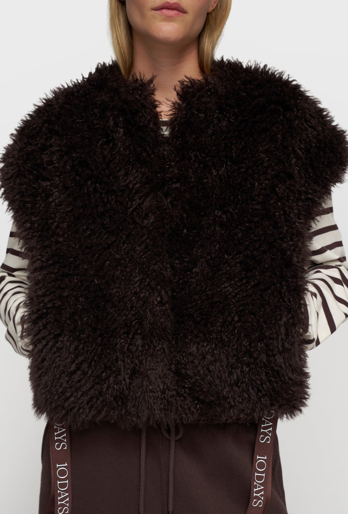 Krótka puchata kamizelka ze sztucznego futra w głębokim brązie