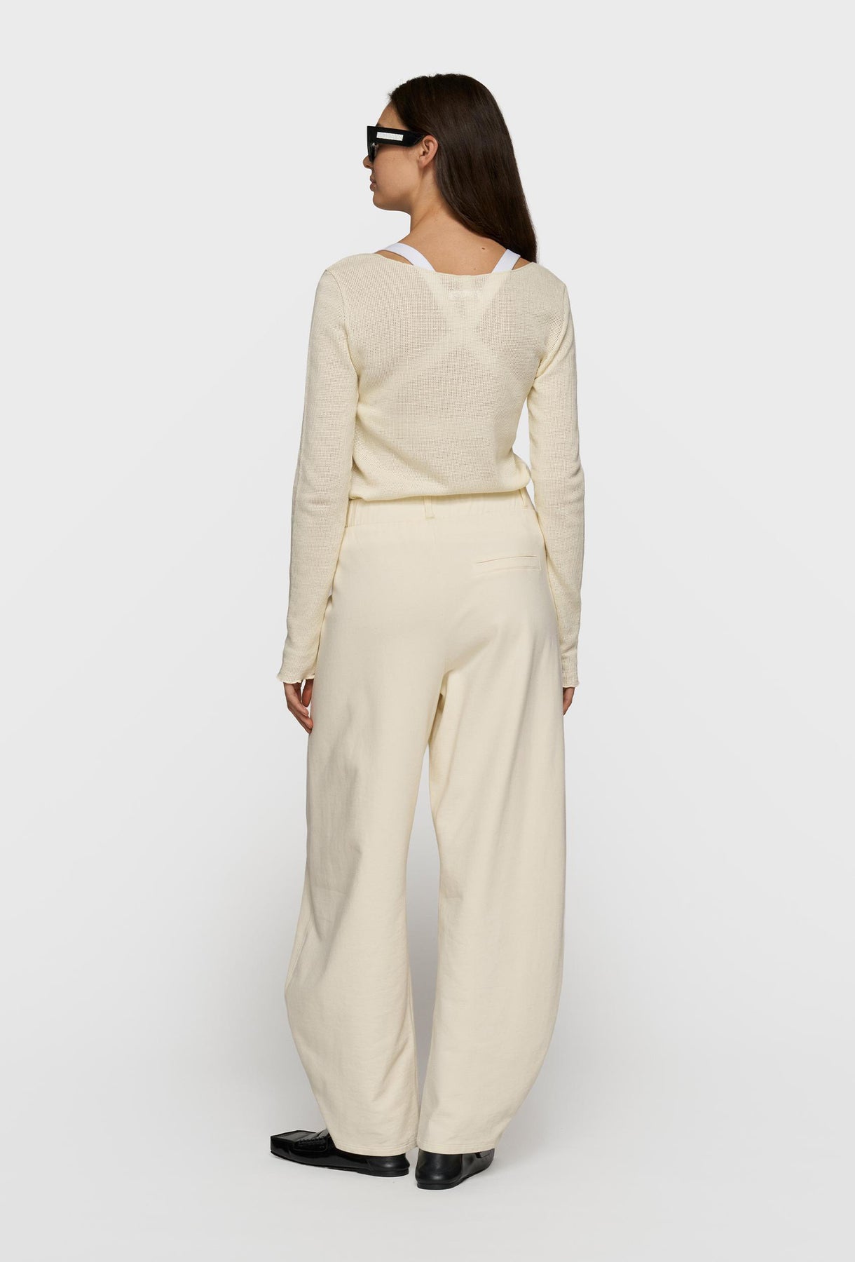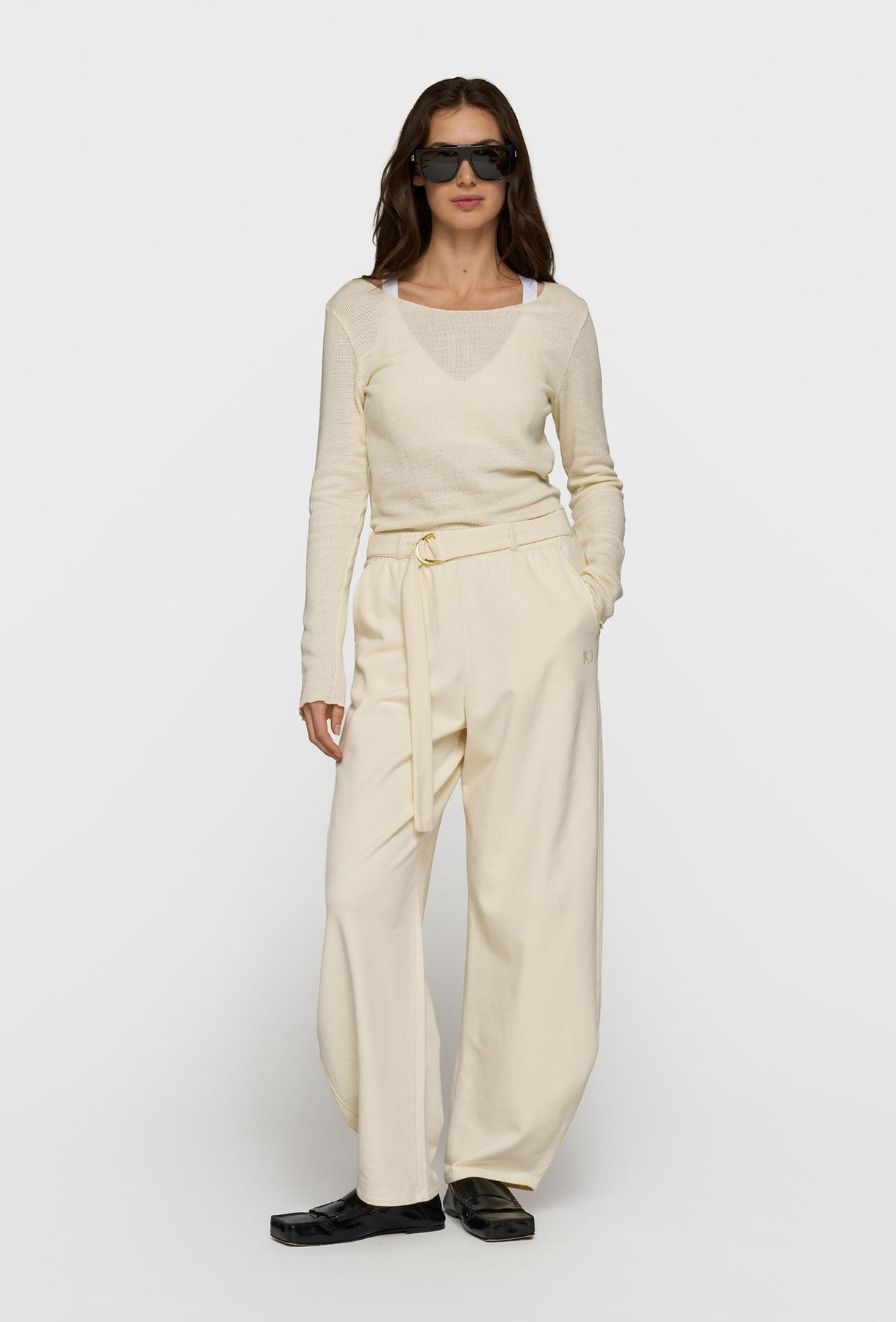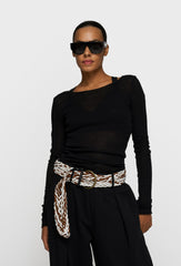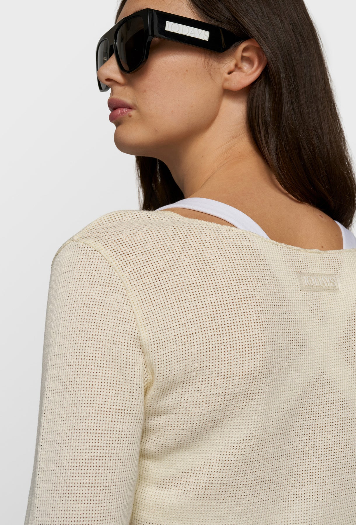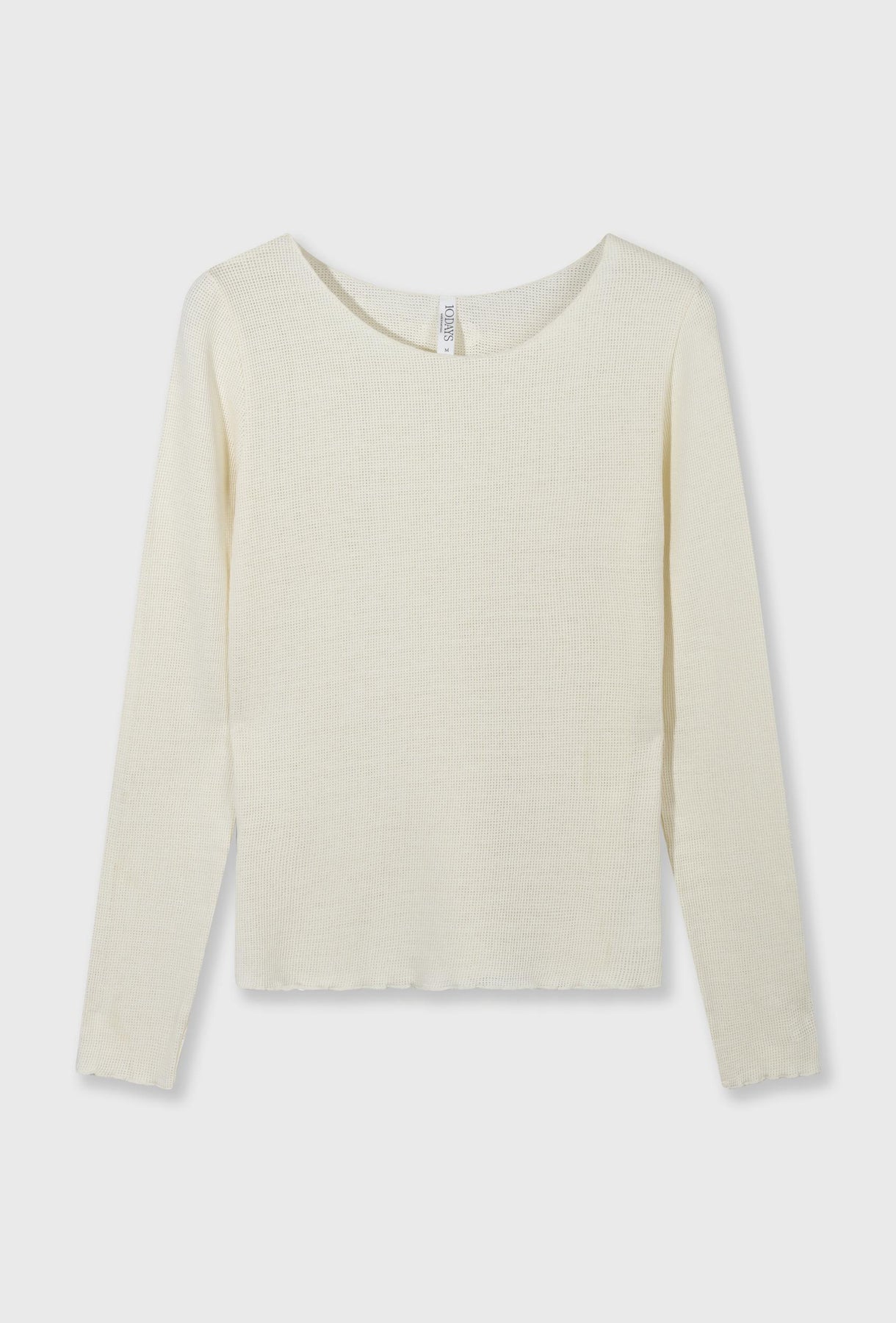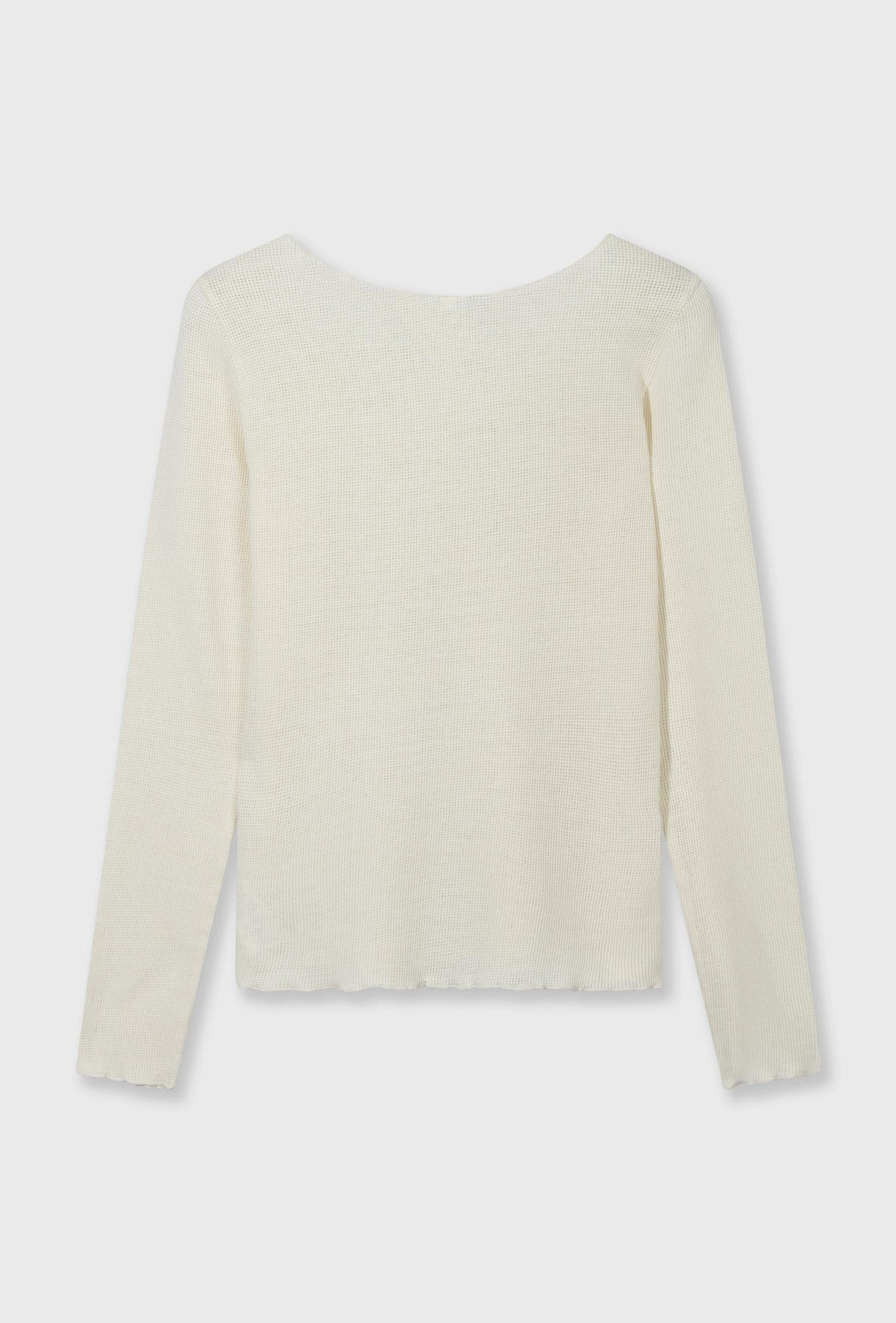 Lekka, dopasowana bluzka z delikatnej siateczkowej dzianiny w subtelnym, kremowym odcieniu. Transparentna struktura materiału nadaje jej lekkości i nowoczesnego charakteru, idealnego do stylizacji warstwowych. Model z szerokim dekoltem typu łódka oraz długimi rękawami pięknie podkreśla linię ramion i sylwetkę. Elastyczna, przewiewna tkanina zapewnia komfort noszenia, a minimalistyczne wykończenie sprawia, że bluzka doskonale sprawdzi się zarówno w codziennych, jak i bardziej eleganckich zestawach.