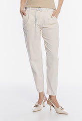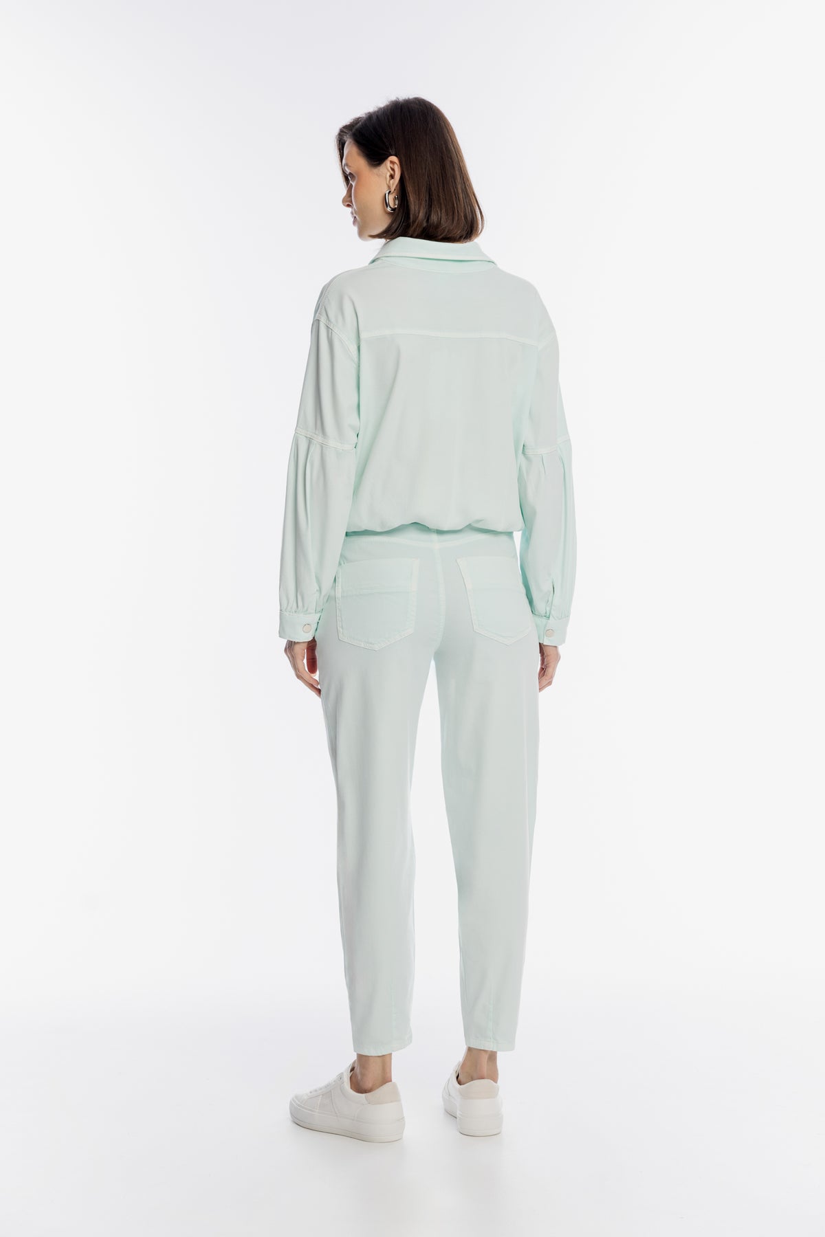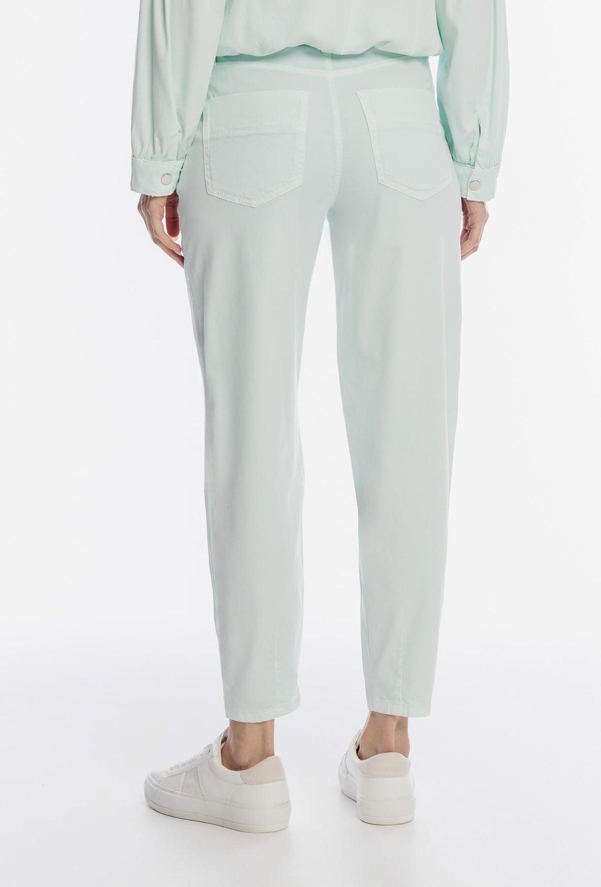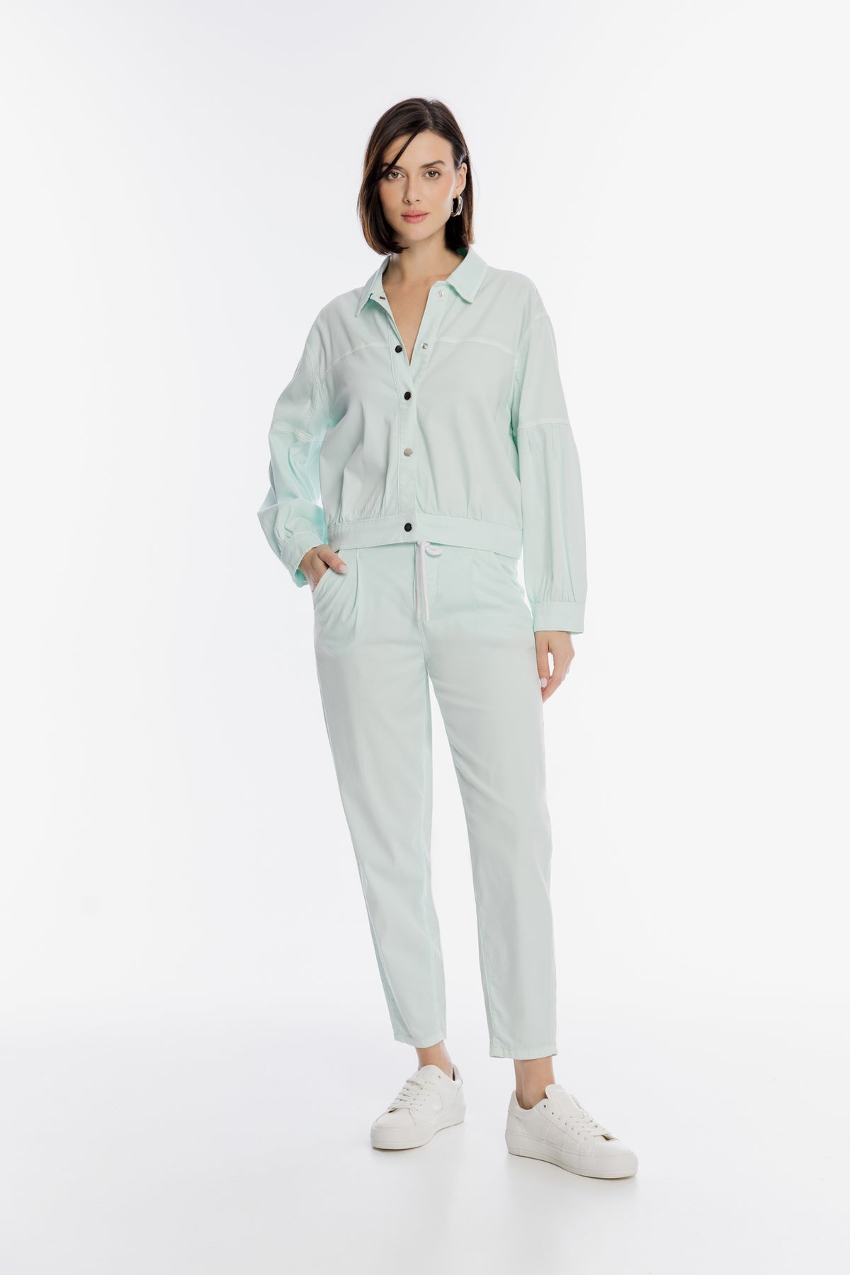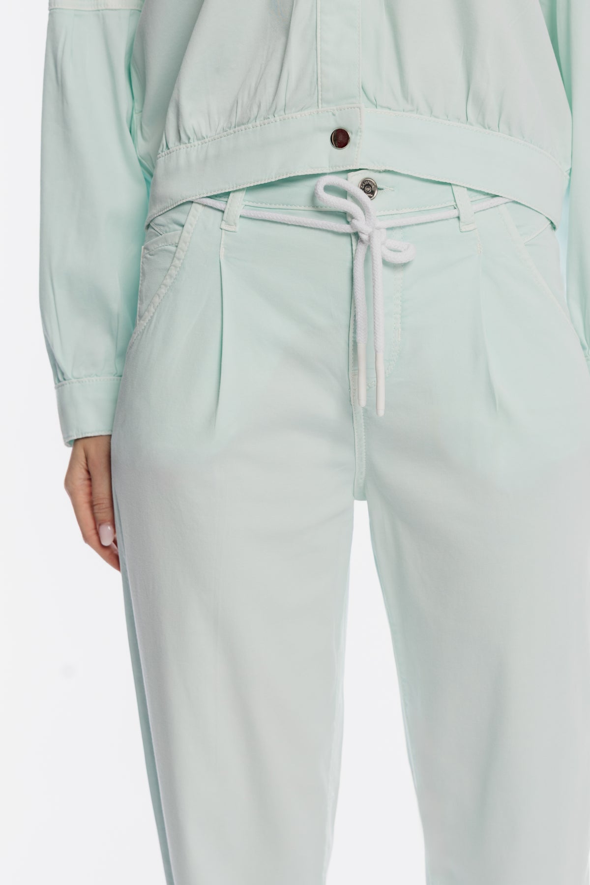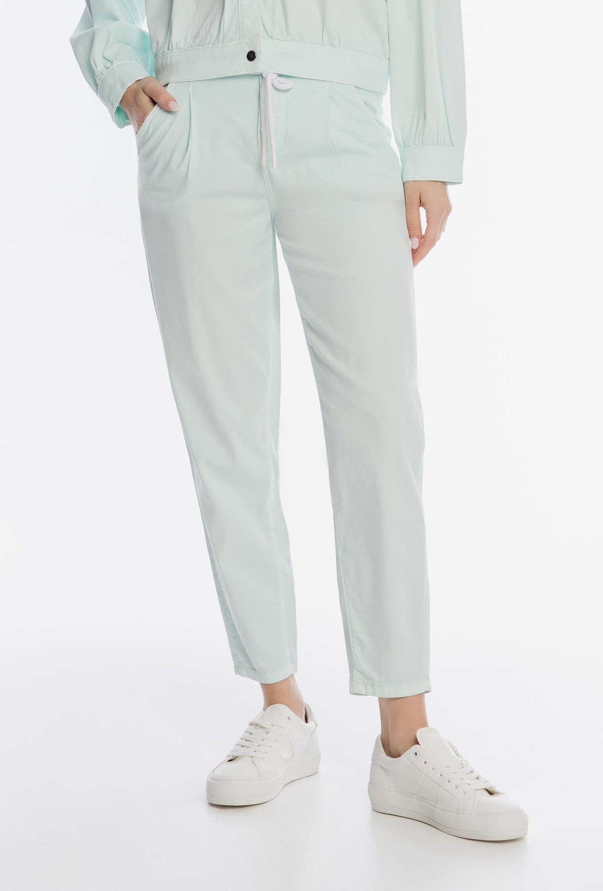Miętowe spodnie damskie o swobodnym kroju z sznurkiem